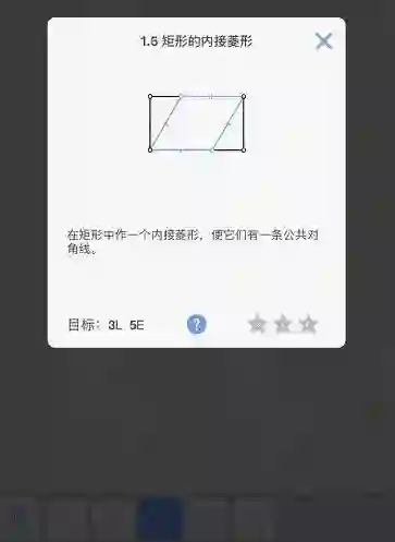 这是一个尺规作图的几何游戏。玩家使用圆规和直尺,在规定的使用次数下,画出游戏要求的平面几何图形。游戏从易到难,先给你点甜头,让你觉得自己数学好像还不错,然后,慢慢地“渐入佳境”……