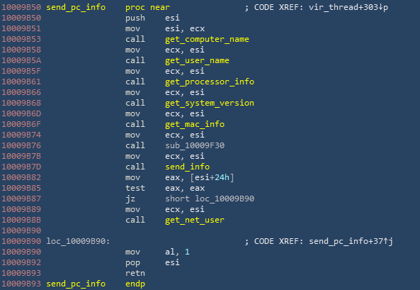 解压包qq.zip中存放有病毒程序“txupd.exe”,图标是MFC默认图标,和腾讯升级程序图标有明显不同,经火绒工程师分析,该病毒为后门病毒,会收集用户计算机名称、账户名称、处理器信息、系统版本、MAC地址等信息上传到C&C服务器作为主机标识,且具备抓取屏幕截图、执行远程命令等功能。