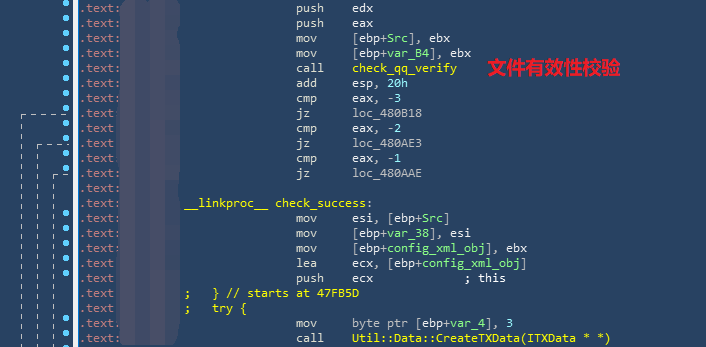 升级程序主要逻辑是:首先将本地QQ软件信息发送到QQ升级服务器,之后根据服务器返回的XML数据下载更新txupd.exe。在早期版本QQ升级程序中,由于下发升级XML数据校验代码中存在漏洞,在2015年版本中已经进行了相应修补,但修复后的升级程序中依然存在逻辑漏洞。QQ升级程序中仅有一处升级内容校验,校验完成后,会下载指定网址中的压缩包,之后验证压缩包MD5,解压执行压缩包中的txupd.exe。相关代码,如下图所示: