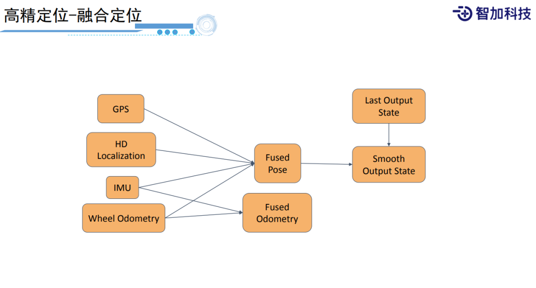 为了使高精定位满足高精度、高频低延迟、高可用性、高可靠性的要求,我们将以上两种定位方法融合使用,产生了融合定位算法。在融合定位算法中,需要同时接收卫星定位结果、高精地图定位结果、IMU数据和轮速计数据,进行融合定位和融合测距。