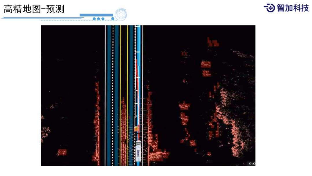 高精地图也可以辅助对道路上其他车辆的轨迹预测,例如如果前方某辆车行驶在实线车道内,可以预测该车辆的变道可能性很小;如果前方车辆行驶在最右侧车道,且前方有高速出口,可以预测车辆有可能驶出高速等。