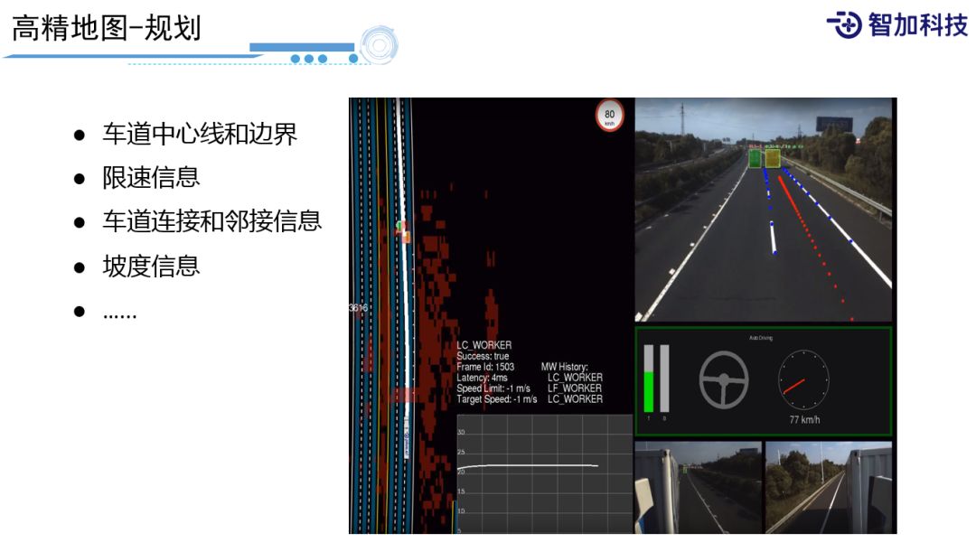 通过高精地图反馈的车道线信息、限速信息、车辆当前位置、坡度信息等,可以实现对车辆行驶速度、变道轨迹、节油驾驶等的规划。