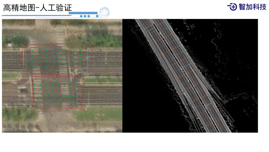 最后,为了提高地图的实用性,需要进行人工验证,为地图增加车道线和道路分隔线等。