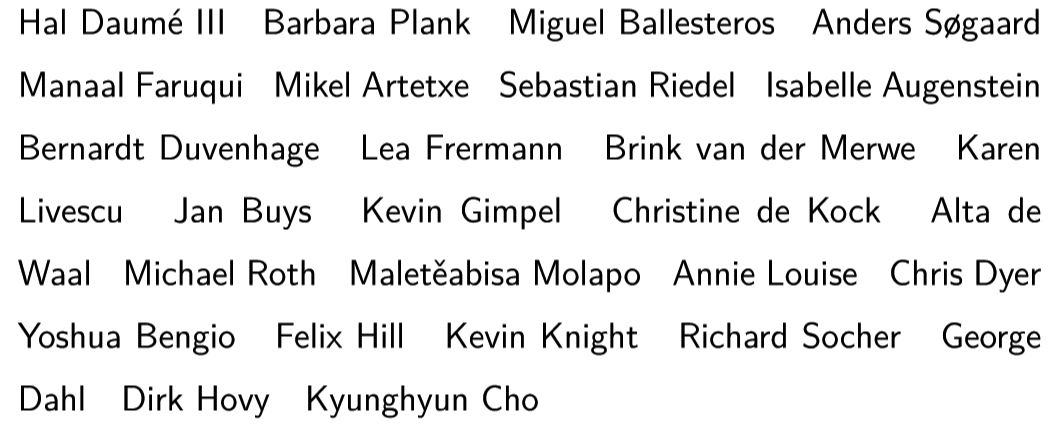 对第二个主题,Sebastian Ruder 等人通过受访研究者的谈话来解答,以下为受访人名单: