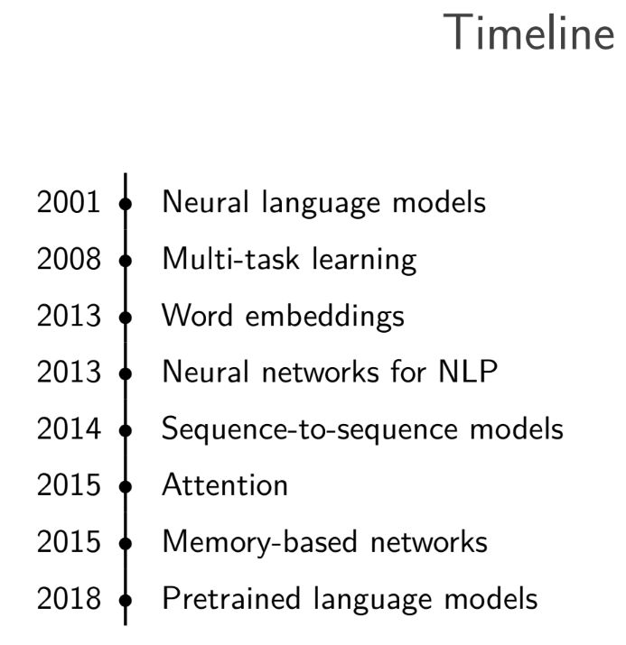 Sebastian Ruder 对每个进展列出了具体的突破性论文: