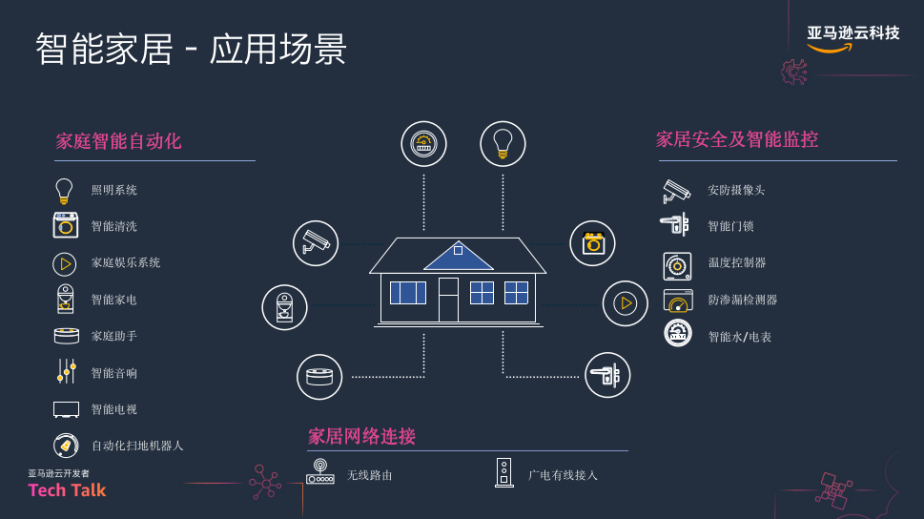扩展性及互操作性 利用亚马逊云科技的基础设施便捷的批量注册百万级设备。使用 Amazon IoT 及 KVS 实现与 Alexa、Google Home 之类的语音助手集成。