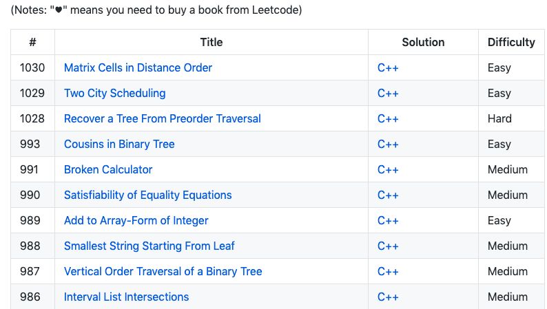 LeetCode 问题的解决方案,主要是 C++,还标明了解决问题的难度: