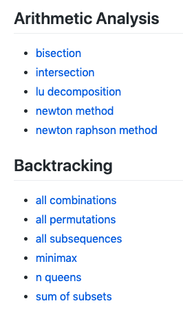Python 中用到的所有算法,用于学习目的,可能实际效果不如 Python 标准 library 实现。