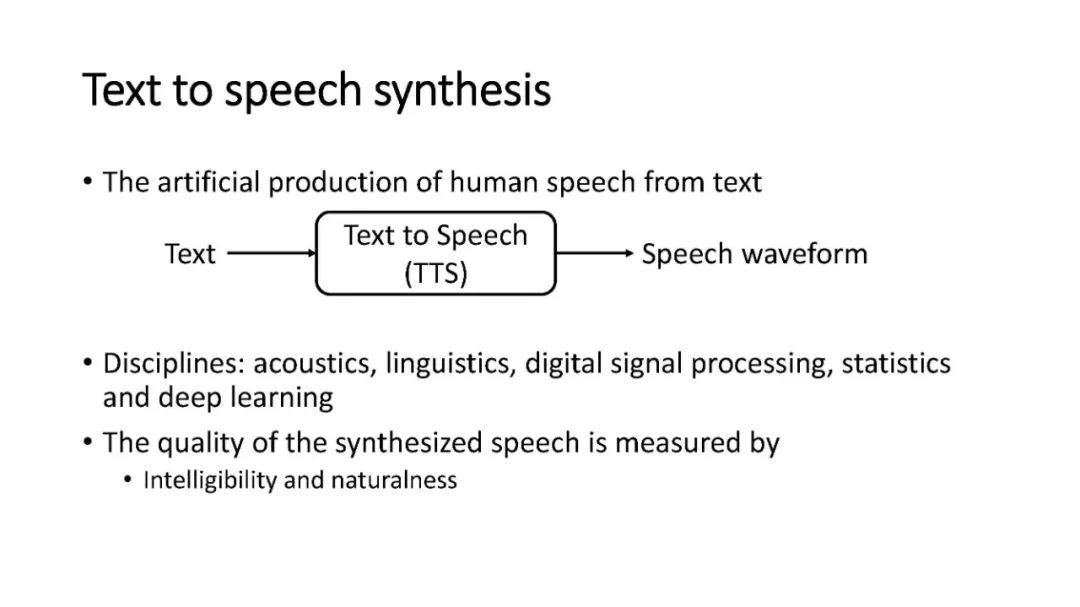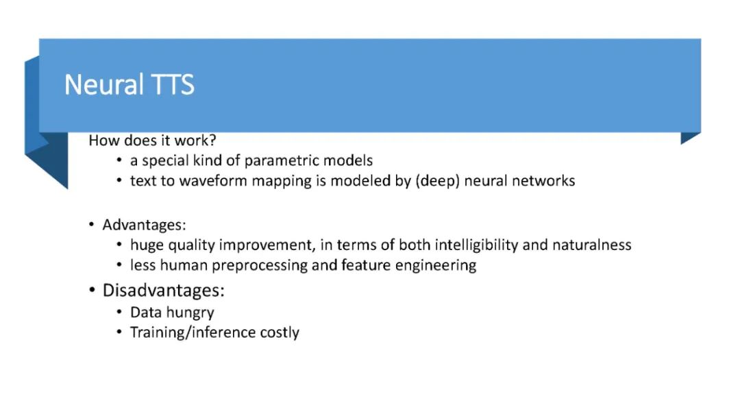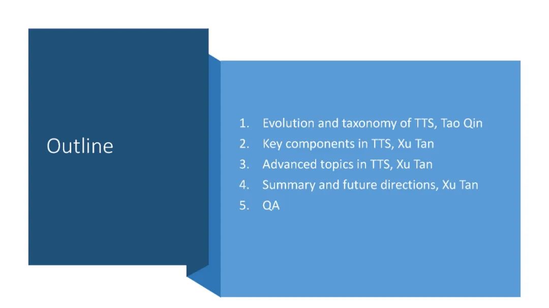 文本到语音(Text to speech, TTS)是人工智能领域的一个研究热点,已成为业界的一项重要产品服务。近年来,随着深度学习和人工智能的发展,基于神经网络的TTS技术大大提高了合成语音的质量。在本教程中,我们将介绍神经文本到语音,它由四个部分组成。在第一部分,我们将简要概述TTS技术的历史。在第二部分,我们将介绍神经TTS的关键组成部分,包括文本分析,声学模型和声码器。在第三部分中,我们将回顾推动TTS研究前沿和涵盖实用TTS产品的工作,包括端到端TTS、非自回归和轻量级TTS、鲁棒/表达/可控TTS、低资源TTS和自定义语音自适应。在本教程的最后,我们将描述TTS的几个挑战,并讨论未来的研究方向。