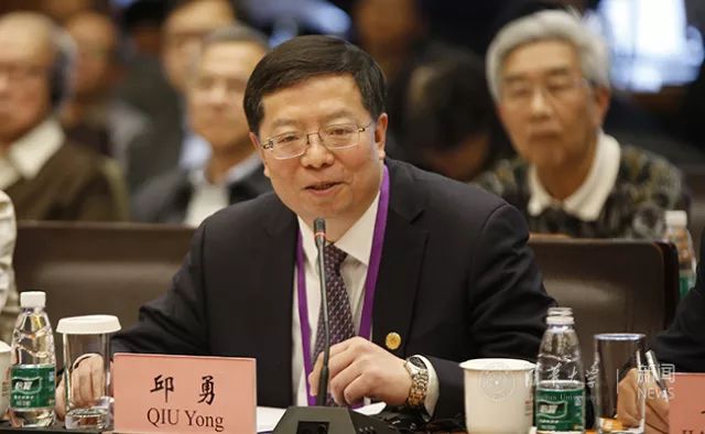 邱勇在会议上讲话。