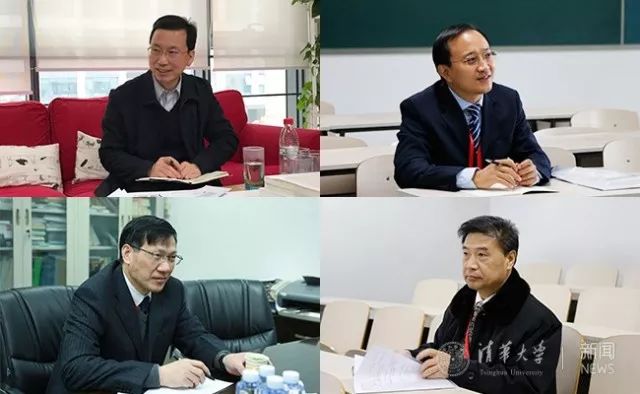 专家组成员谢和平、张广军、李言荣、黄维(从上至下、从左至右)在清华考察期间的工作照。