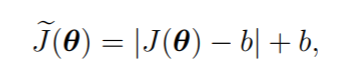 上图可以大致描述整篇文章干了一件啥事。先看左边一列,是一个正常的训练过程,对于阶段A,随着training loss的降低,test loss也会 跟着降低;但是到阶段B后,我们继续在训练集上训练,会让test loss上升。右边一列是本文提出的 flooding 方法,当training loss大于一个阈值(flood level)时,进行正常的梯度下降;当training loss低于阈值时,会反过来进行梯度上升,让training loss保持在一个阈值附近,让模型持续进行“random walk”,并期望模型能被优化到一个平坦的损失区域,这样发现test loss进行了double decent!一个简单的理解是,这和early stop类的方法类似,防止参数被优化到一个不好的极小值出不来。