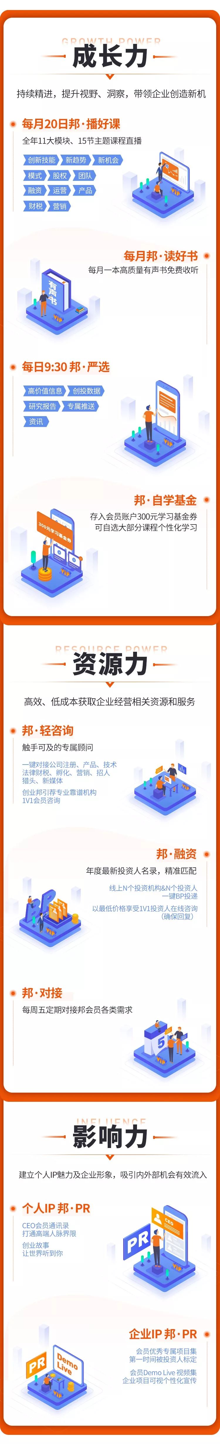 还有40+堂创业邦星际学院爆款课程;4000+创业人脉、社群资源对接;千元文档大礼包,12本有声书;免费参加创业邦全年3次峰会、投融资对接会;无限次参加全国12座城市线下所有活动(会员聚会、沙龙、公开课、路演活动....)