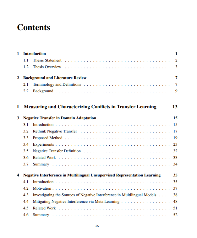 传统的机器学习范式在单个任务上训练特定任务模型,已经在许多领域(如计算机视觉和自然语言处理)取得了最先进的性能。为了使机器学习模型具有更广泛的适用性,迁移学习旨在适应从源任务中学习到的知识,以提高在其他目标任务中的表现。然而,现有的迁移学习范式还有待进一步研究,因此我们对其潜在的局限性、潜在的机制以及实现更智能迁移的解决方案的认识有限。特别是,当知识从一个不太相关的来源转移时,可能会对目标性能造成负面影响,这种现象称为负转移。然而,负迁移的原因尚不明确,负迁移如何影响模型的泛化和样本效率也不清楚。在这篇论文中,我们的目标是彻底描述和解决机器学习模型中的负迁移,我们仔细研究了流行的视觉和自然语言处理设置中的负迁移,收集了其原因的见解,并提出了提高泛化和样本效率的解决方案。本文由三个部分组成。第一部分对当前迁移学习模型中的负迁移现象进行了系统的分析。我们在领域适应和多语言自然语言处理模型中正式描述了其条件,并证明任务冲突是负迁移的一个关键因素。在第二部分,我们提出了各种对齐方法,通过更好的对齐表示和梯度解决上述任务冲突,增强可转移模型的泛化。最后,在第三部分,我们探索了有效样本迁移学习算法,使用较少的训练和/或校准数据来缓解负迁移。本文的主要贡献包括对迁移学习中的负迁移问题提出了新的见解,提出了一系列实用的方法和算法,提高了模型的泛化和效率。