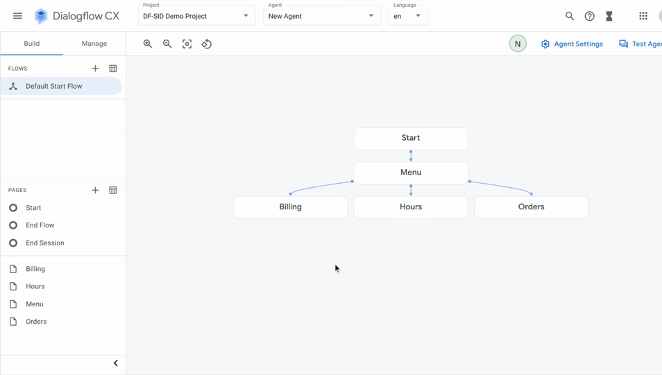 智能对话系统 Dialogflow CX 的使用界面