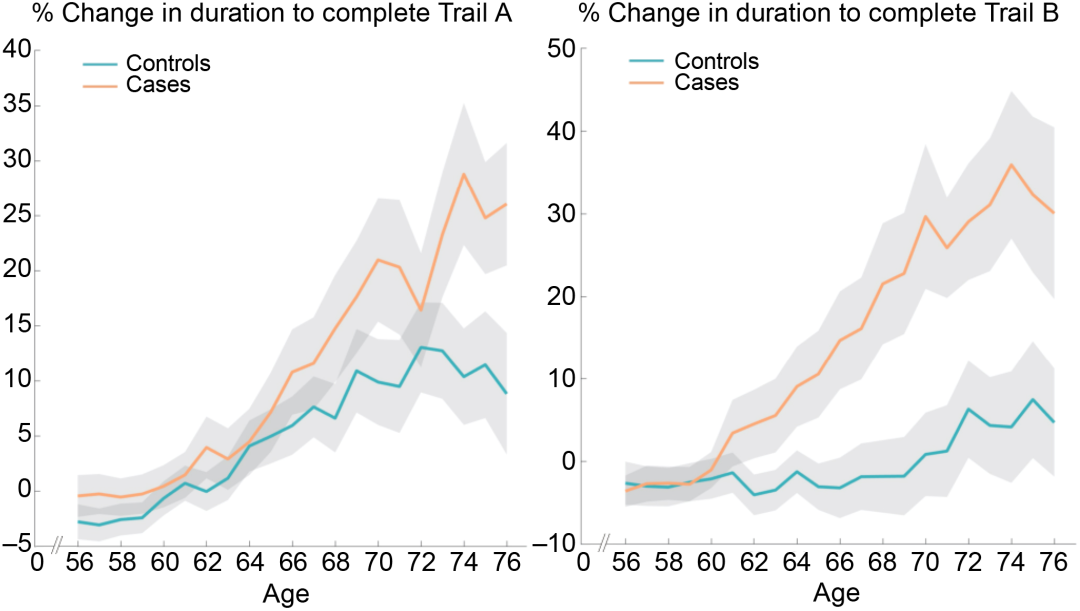 此外,差异会随着年龄增长而增加。在追踪测试中,五六十岁的参与者表现都差不多,但之后差距明显扩大了。