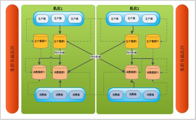 生产灾备:当生产集群出现故障的时候,生产者可切换本机房的生产集群,如果本机房的集群没有可用的情况下可转发到其他机房的生产集群。