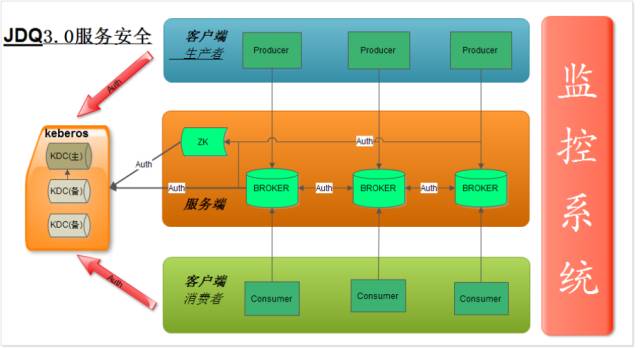 kafka在0.9之后才加入安全认证,在此之前集群的安全问题还是很严重,JDQ需要保证平台的安全稳定运行,需要防止不明身份的broker对集群的访问,不明身份的broker不应该成为集群的一员,不明身份的broker不应该能够从集群中的broker拉取数据,防止集群在ZK上的metadata被篡改,保证数据存储的安全,保证集群与外部客户端的安全通讯,执行客户端的用户身份认证。