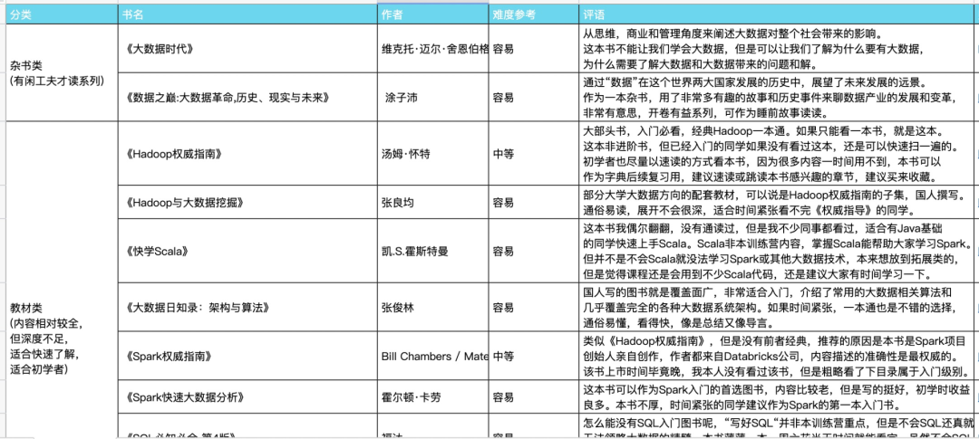 一、来自大佬的大数据成长书单,从入门到进阶到拓展全包括。有这个书单,你就不用再烦恼到底看什么书了,大佬都帮你筛选好了。