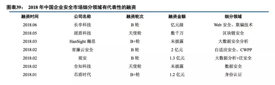 随着零信任架构的发展,安全且简化的身份认证技术,必然会成为未来趋势,预计2020年中国身份认证规模可超过25亿元,目前身份认证国内领先的创业公司包括芯盾时代、众人科技、九州云腾等。