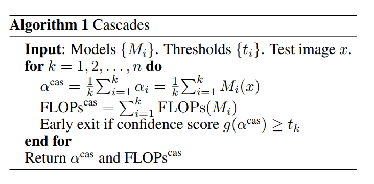 通过级联设计,一些困难的图像输入比简单的图像需要更多的FLOPS,因为更具挑战性的输入比更容易的输入在级联中经历更多的模型。