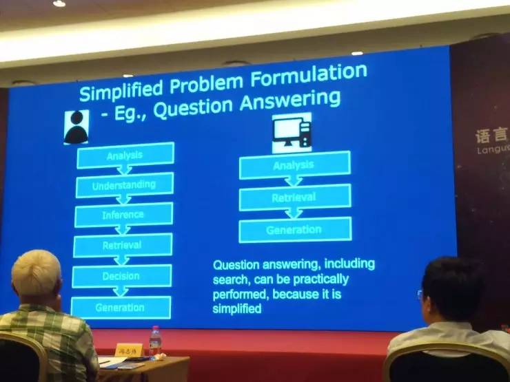 第一个,我们现在能去做的事情。人类要是理解语言的话,比如人做这种问答,问我姚明身高是多少,我想一想可能是 2 米 29。我回答的这个过程,可能包含了多个步骤。比如语言的分析、理解、推理、知识的检索,最后做判断,最后产生我的回答,是一个非常复杂的过程。