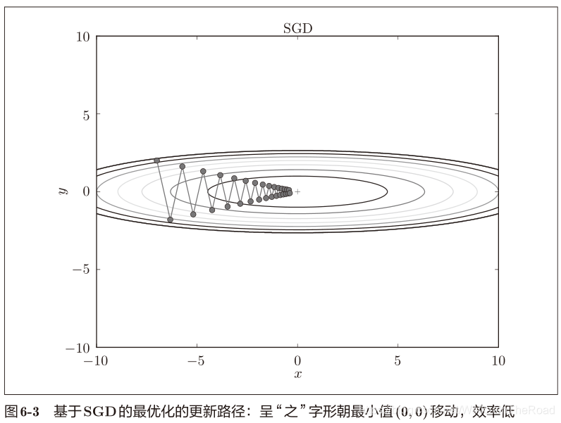 SGD呈“之”字形移动。这是一个相当低效的路径。