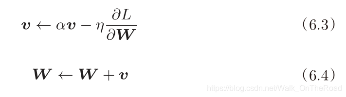 class Momentum:def __init__(self, lr=0.01, momentum=0.9): # momentum = α,设定为0.9self.lr = lrself.momentum = momentumself.v = None # 初始化时,v中什么都不保存# 第一次调用 update()时,v会以字典型变量的形式保存与参数结构相同的数据def update(self, params, grads):if self.v is None:self.v = {} # 变量v 保存物体的速度for key, val in params.items(): # params.items()为参数权重Wself.v[key] = np.zeros_like(val) # v会以字典的形式保存与参数W结构相同的数据for key in params.keys():self.v[key] = self.momentum*self.v[key] - self.lr*grads[key] # 式(6.3)params[key] += self.v[key] # 式(6.4) W = W + v