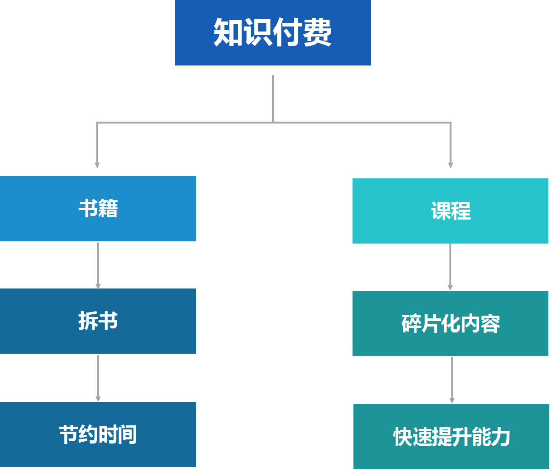 我们将目前的知识付费内容分为两大类:读书类及碎片化课程类。其中,快速阅读可以让用户节约获取知识的时间;而碎片化课程则让用户随时随地高效获取技能。