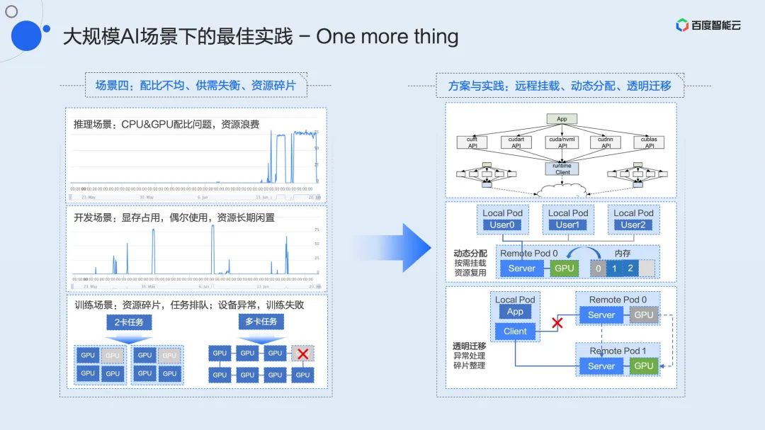 这里我再用三分钟左右的篇幅讲一下还在内部验证中的功能,这些功能将会近期完成在百度百舸平台的上线,进一步解决在大规模AI场景下常见的配比不均、供需失衡、资源碎片等问题。