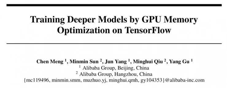 《Training Deeper Models by GPU Memory Optimization on TensorFlow》的论文贡献如下:聚焦于特征图,提出两种方法减少深度神经网络训练过程中的 GPU 显存消耗。基于数据流图的「swap-out/in」方法使用主机内存作为更大的内存池,从而放宽 GPU 显存上限的限制;而内存高效的注意力层可用来优化显存消耗量大的 Seq2Seq 模型。这些方法的实现被无缝整合到 TensorFlow 中,且可透明地应用于所有模型,无需对现有模型架构的描述作任何改变。