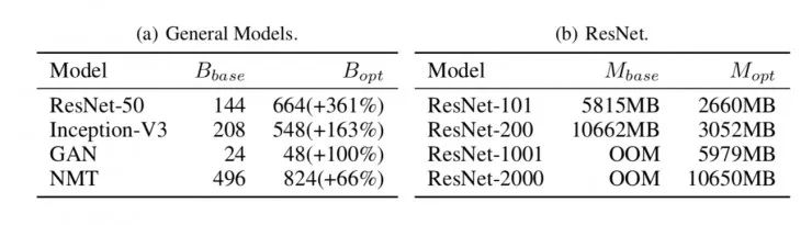 近期深度学习在不同应用中发挥的作用越来越重要。训练深度学习模型的必要逻辑包括适合 GPU 的并行线性代数计算。但是,由于物理限制,GPU 的设备内存(即显存)通常比主机内存小。最新的高端 NVIDIA GPU P100 具备 12–16 GB 的显存,而一个 CPU 服务器有 128GB 的主机内存。然而,深度学习模型的趋势是「更深更宽」的架构。例如,ResNet 包含多达 1001 个神经元层,神经网络机器翻译(NMT)模型包含 8 个使用注意力机制的层,且 NMT 模型中的大部分的单个层是按顺序水平循环展开的,难以避免地带来大量显存消耗。