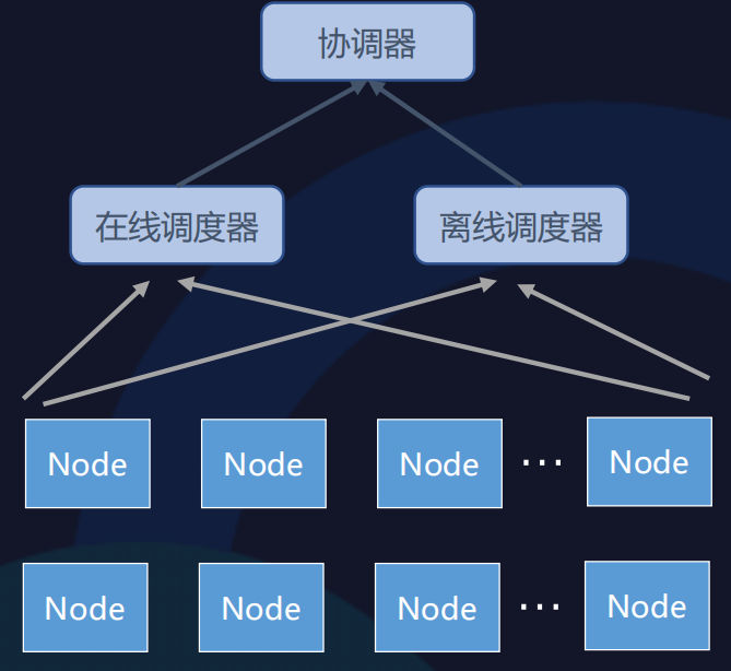 若集群只有一个调度器,在线和离线调度逻辑集中在一起,会产生调度器逻辑复杂、调度性能易成为瓶颈等问题。