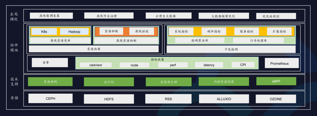 资源隔离是混部的基础,全维度资源隔离能够避免离线在单一维度上的资源挤占对在线造成影响。