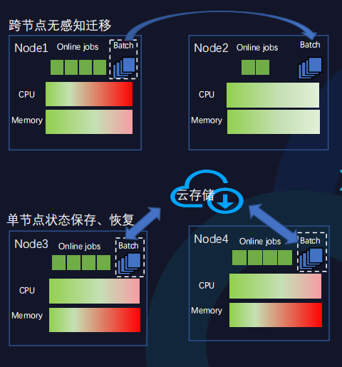 容器热迁移是指在保证离线任务正常运行的前提下,从一个节点迁移到另一个节点。