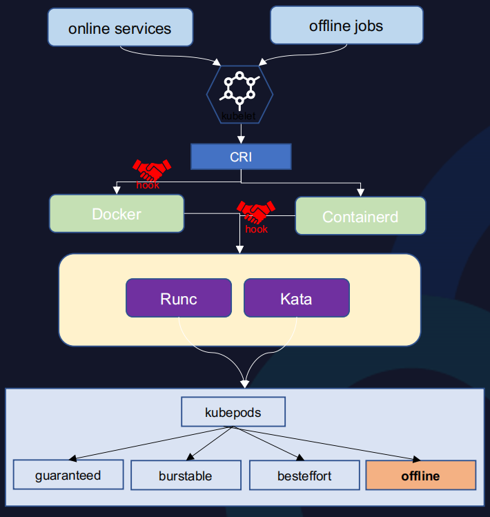 离线任务运行在在线机器上,复用在线机器的空闲资源,在云原生场景下应该如何管理离线资源呢?