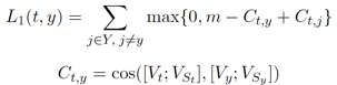 通过hinge loss来训练模型,将mention和ontology的表示学习到同一语义空间: