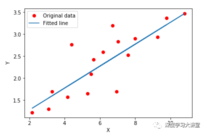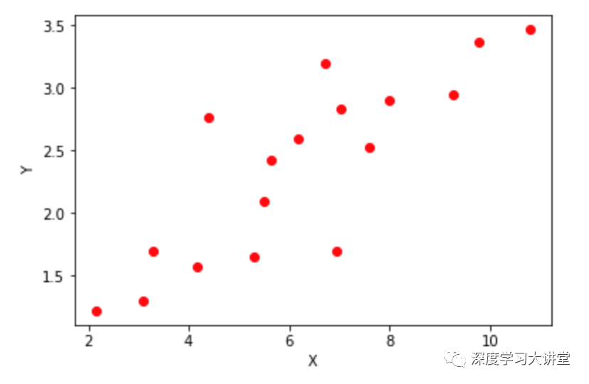 比如我们想从下图所示的数据(X,Y)中学习一个线性关系y=w*x+b
