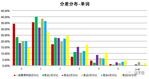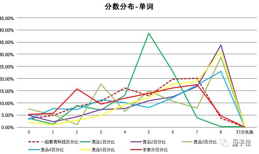 在分数分布上,一起教育科技的引擎在单词和句子上的打分,与其他各家更趋近人类专家的水平。