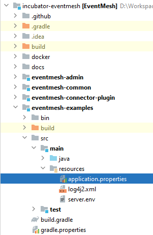 1.修改eventmesh-examples/src/main/resources/application.properties指向已经部署的EventMesh Runtime。