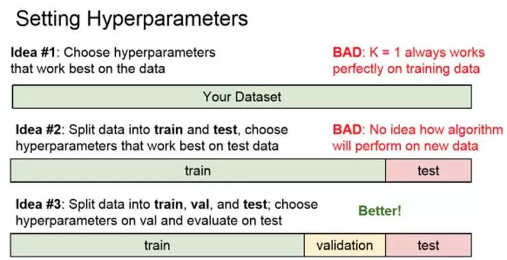 选择能对训练集给出高准确率、表现最佳的超参数。这其实是一种非常糟糕的想法,千万不要这么做。