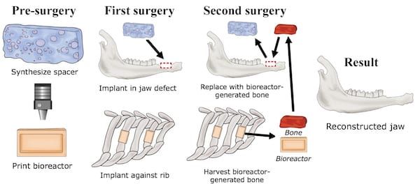 “这项工作的一项重大创新是利用3D打印的生物反应器在身体的另一部分形成骨骼,同时让那些缺陷部分去接受新生成的组织”,莱斯大学生物工程和化学与生物分子教授Mikos说,他也是美国国家工程院和国家医学院院士。