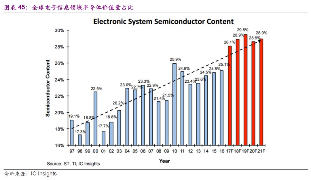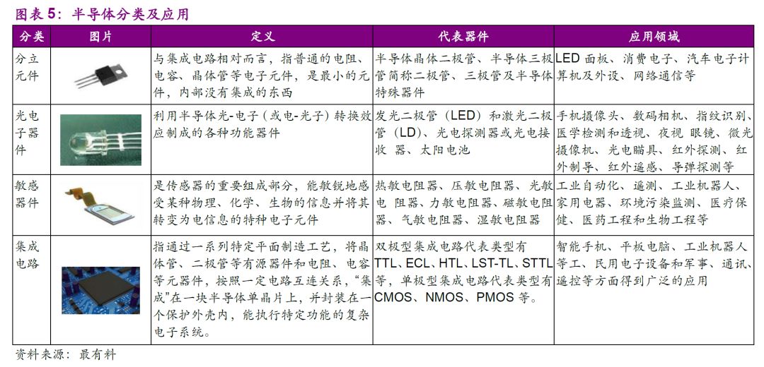 半导体位于电子行业的中游,上游是电子材料和设备。半导体和被动元件以及模组器件通过集成电路板连接,构成了智能手机、PC等电子产品的核心部件,承担信息的载体和传输功能,成为信息化社会的基石。
