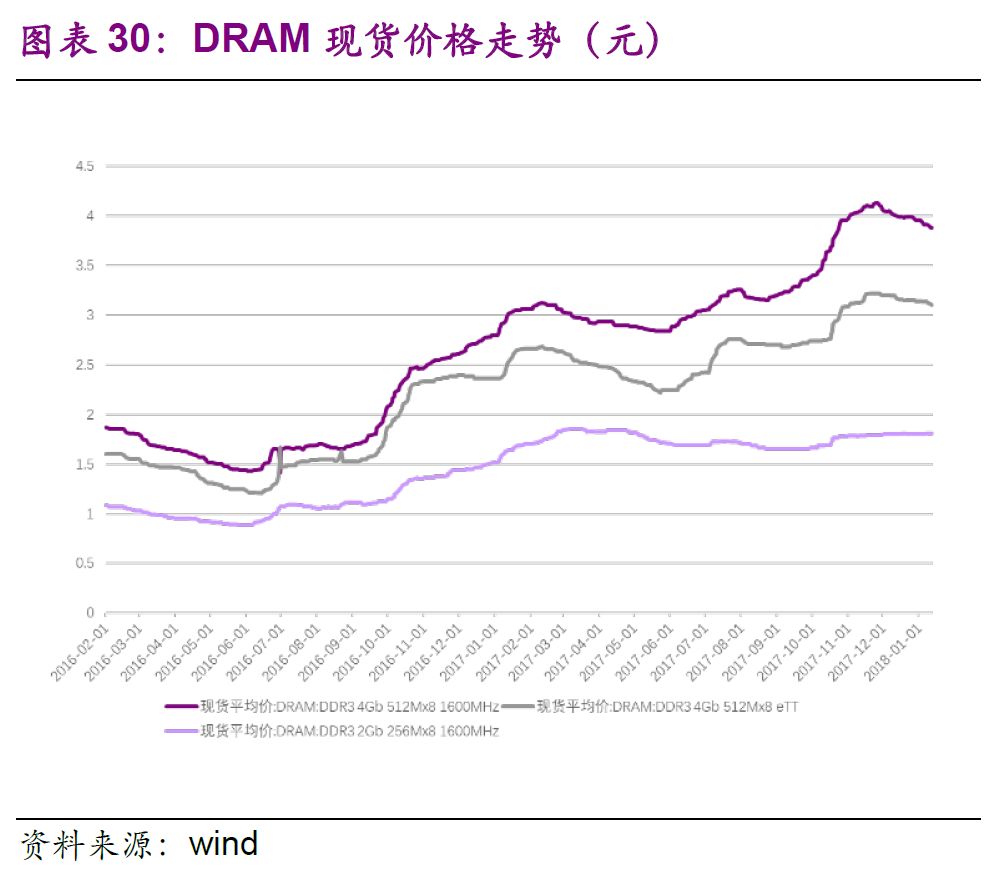 展望2018年上半年,因DRAM三大厂产能计划趋于保守,2018年新增投片量仅约5-7%,实质新产能开出将落于下半年,导致上半年供给仍然受限,整体市场仍然吃紧;SK海力士决议在无锡兴建新厂,最快产能开出时间落在2019年,我们预计在2018年上半年服务器内存价格仍然会延续涨价的走势。
