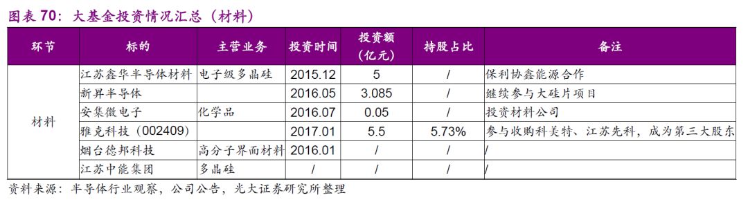 国内厂商在小尺寸硅片、光刻胶、CMP材料、溅射靶材等领域已初有成效。比如8英寸硅片领域的金瑞泓、国盛电子和有研半导体,光刻胶相关领域的江化微,靶材领域的江丰电子和阿石创,CMP抛光材料的安集微电子和鼎龙股份。