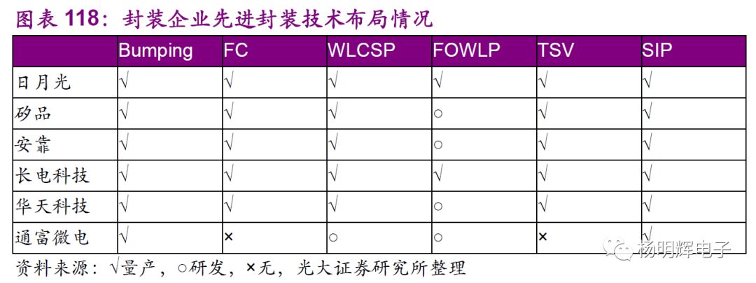 掌握多种先进封装技术。公司通过实施国家科技重大专项02专项等科技创新项目以及新产品、新技术、新工艺的不断研究开发,自主研发出FC、Bumping、MEMS、MCM(MCP)、WLP、SiP、TSV、Fan-Out等多项集成电路先进封装技术和产品,随着公司进一步加大技术创新力度,公司的技术竞争优势将不断提升。