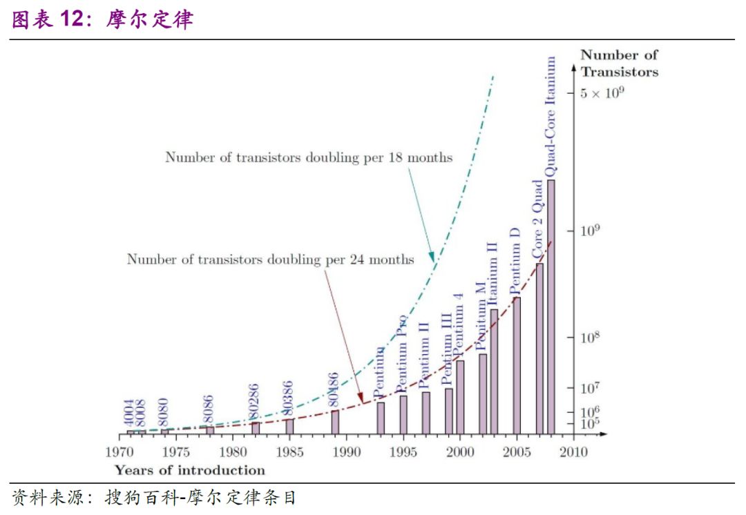 技术更新换代快。根据摩尔定律:当价格不变时,集成电路上可容纳的元器件数目,约每隔18-24个月便会增加一倍,性能也将提升一倍,从而要求集成电路尺寸不断变小。