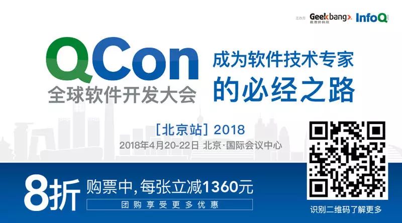 目前 8 折报名中,立减 1360 元,点击「阅读原文」与国内外一线技术大咖碰撞思维火花,有任何问题欢迎咨询购票经理 Hanna,电话:15110019061,微信:qcon-0410