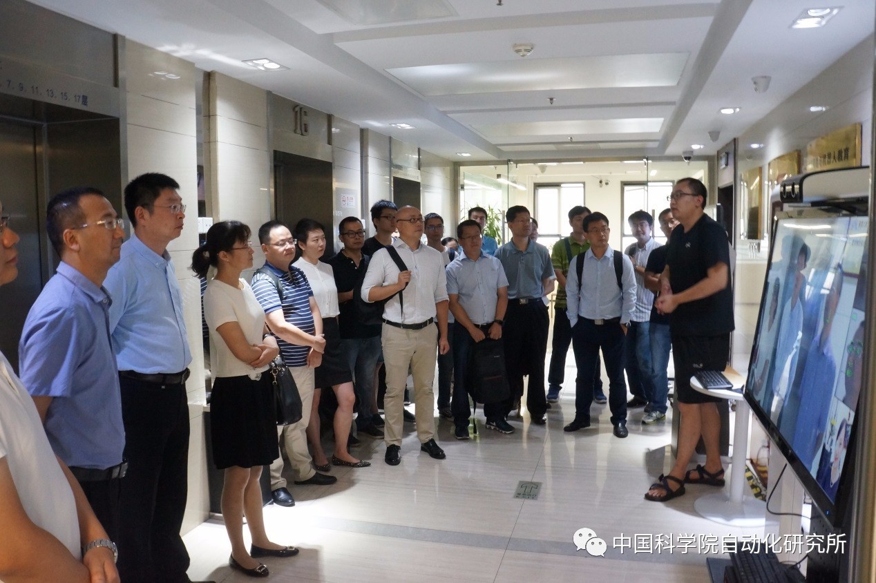 研讨会前,华为公司一行30余人在科技处杨鑫处长的陪同下,先后参观了自动化所类脑智能研究、脑网络组图谱与脑电同步检测仪、虹膜识别与智能视频监控、图像与视频分析等科研成果,并与科研人员进行了细致深入的交流。