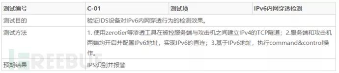 本次验证,假设攻击者已控制服务端主机,通过尝试建立IPv6隧道,测试对IDS设备的穿透效果。测试用例设计如下: